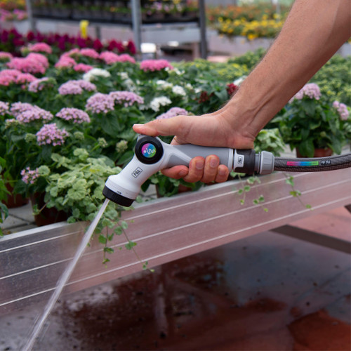 Manguera de jardín resistente, ligera y compacta con racores y lanza